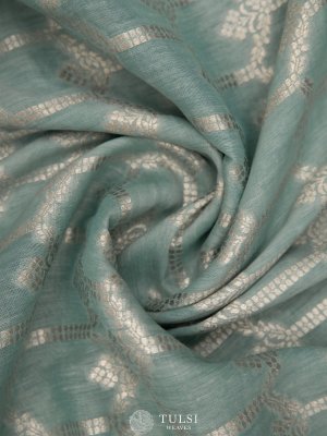 The Powder Blue woven linen saree with a zari border is a lovely option! The subtle blue shade combined with the intricate zari work makes it both elegant and eye-catching. This saree would be perfect for celebrations or special occasions.