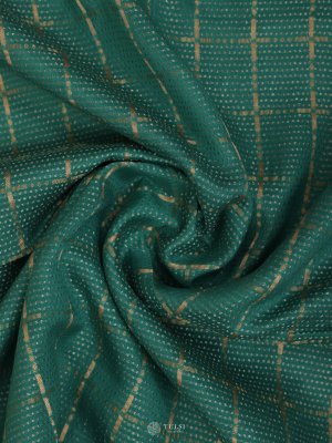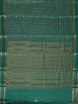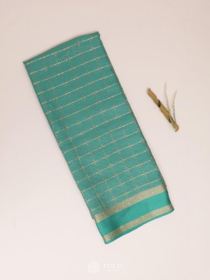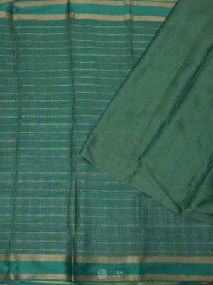 This Aqua Green Mysore Silk Saree exudes timeless charm and sophistication. Crafted from pure silk, it features a lustrous texture with subtle silver zari checks across the body, adding a graceful shimmer. The rich mustard hue is beautifully complemented by a smooth golden border and intricately woven pallu, making it perfect for festive occasions or traditional celebrations.