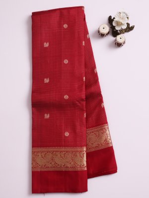 Burgundy Kanjeevaram Silk Saree with Zari Border