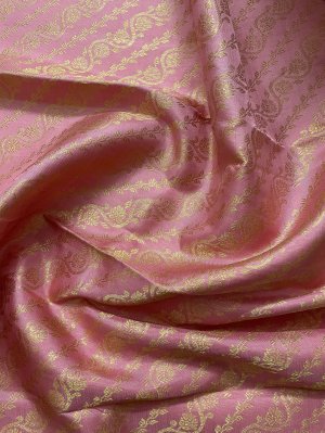 This handwoven baby pink Kanjeevaram silk blouse is adorned with elaborate floral gold zari brocade all over.