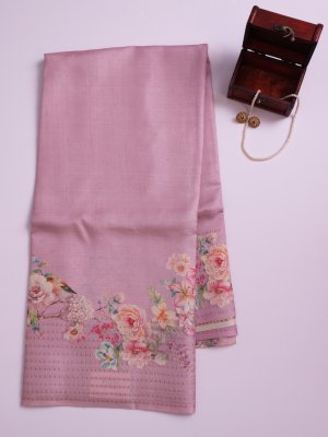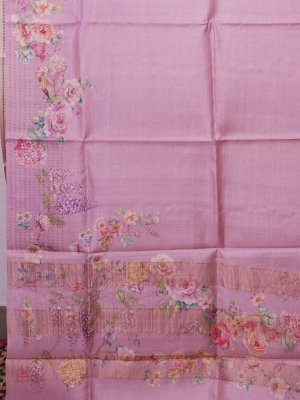 Mauve Printed Tussar Silk Saree