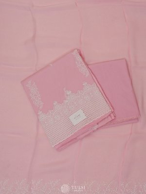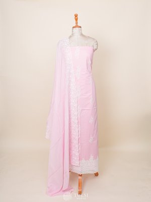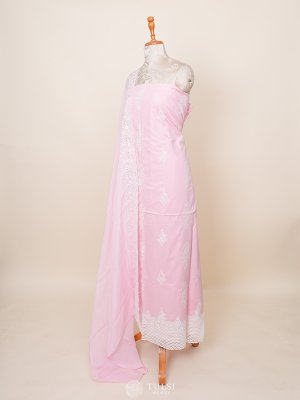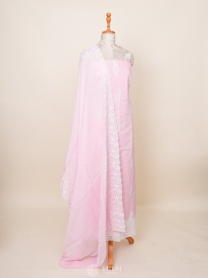This Baby Pink Soft Cotton Salwar Material features a delicate white lacework border and intricate designs on the body, offering a perfect blend of elegance and comfort. Ideal for casual or festive wear, it exudes a charming and feminine appeal.