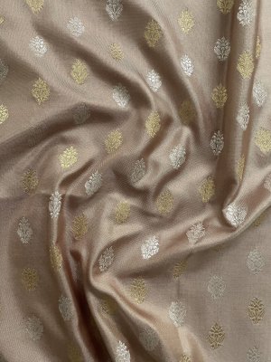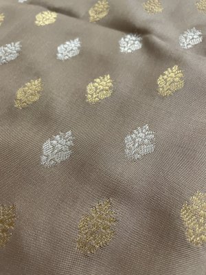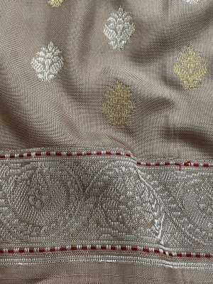 Beige Banaras Silk Blouse With Gold and Silver Zari Floral Butties