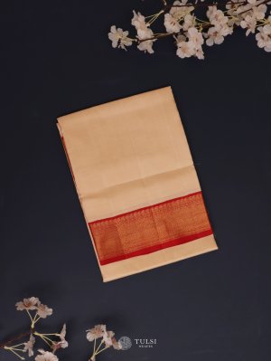This Beige Silk Dhoti reflects understated grace and tradition. The serene White base is enhanced with a soft Red border, lending it a subtle hint of color without overpowering its simplicity.