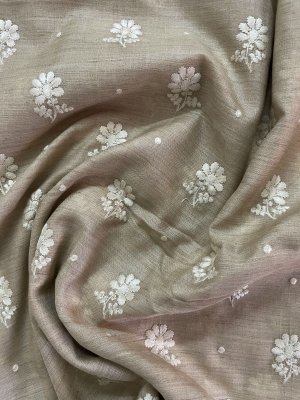 This Handwoven Beige (Tussar colour) Tussar Silk Blouse is adorned with Floral Embroidered Butties All Over.