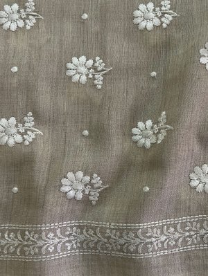 Elephant Grey Tussar Silk Blouse with Floral Embroidery
