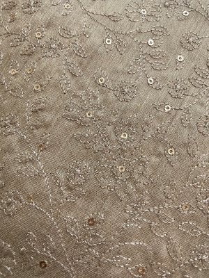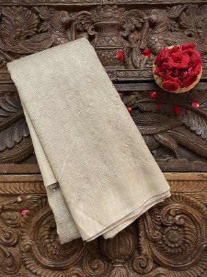 This Handwoven Beige (Tussar Colour) Tussar Silk Blouse is adorned with Floral Embroidery and Sequins Detailing All Over.
