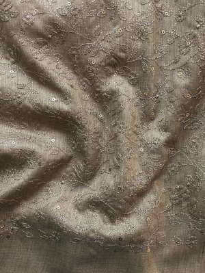 Smoke Grey Tussar Silk Blouse with Floral Embroidery