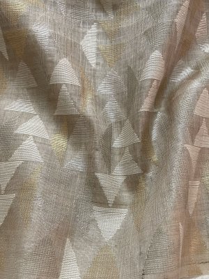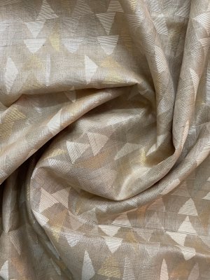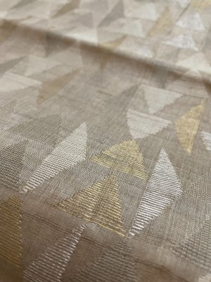 This Handwoven Beige Tussar Silk Blouse is adorned with Gold Zari and Thread work detailing all over.