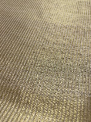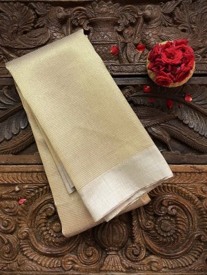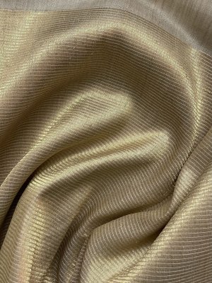 This Handwoven Beige Tussar Silk Blouse is adorned with Gold Zari Stripes All Over.