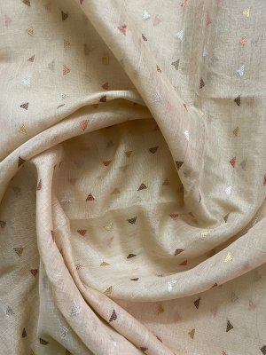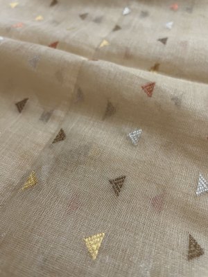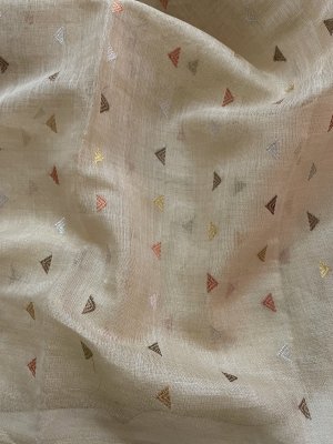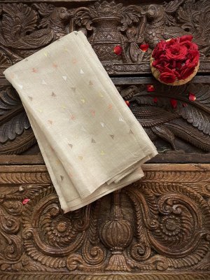 This Handwoven Beige Tussar and Tissue Silk Blouse is adorned with thread work detailing all over.