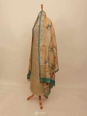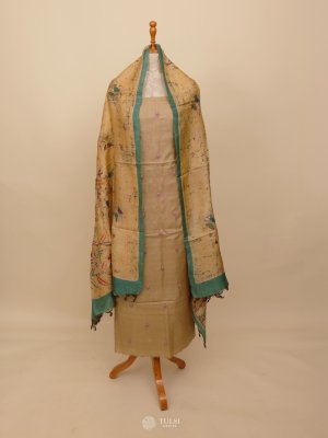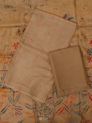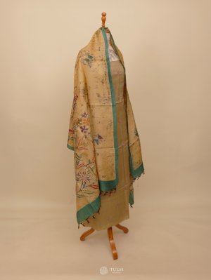 This Beige Tussar Salwar Material that reflects timeless tradition and grace. Paired with a beautifully Batik Dupatta, it brings together rich heritage and subtle charm. Perfect for festive occasions or elegant everyday wear.