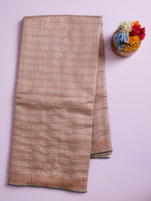 Beige Tussar Silk Saree With Kantha Embroidery