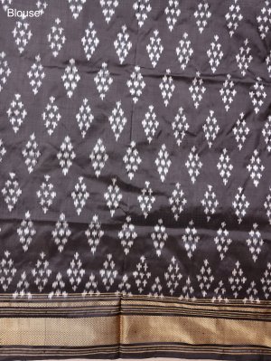 Greige Ikat Silk Saree With Black Border