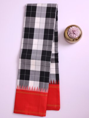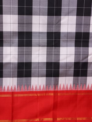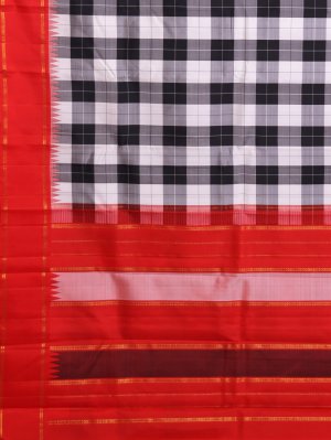 Black and White Checked Kanjeevaram Silk Saree with Red Border