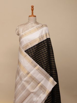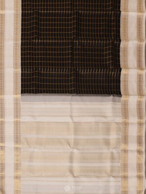 Checked Black And White Kanjeevaram Silk Saree
