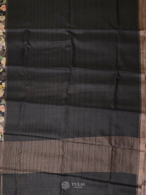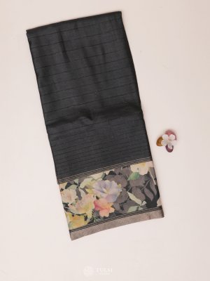 Dark Grey Printed Tussar Silk Saree