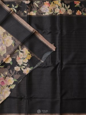 This Black Tussar Silk Saree stands out with its beautifully detailed floral prints that flow gracefully across the border. The natural texture of Tussar silk gives it a soft sheen and fluid drape, making it perfect for festive gatherings, cultural events, and elegant daytime occasions.