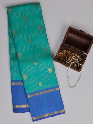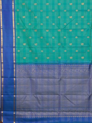 Vintage 57 - Dark Green Checked Kanjeevaram Silk Saree With Anandha Blue Border