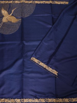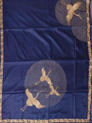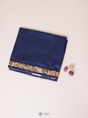 Blue Tussar Silk Saree with Floral Embroidery Border