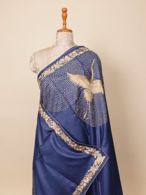 This beautiful Tussar Silk Saree features a shade of Blue all over the body and has a floral embroidery design on the border, which makes this saree perfect for every occasion.