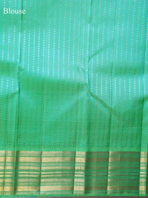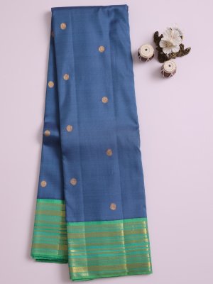 Bluish Grey Kanjeevaram Silk Saree With Greenish Blue Border