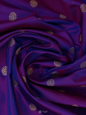 This Bluish Purple Kanjeevaram silk blouse brings a timeless charm with its rich weave and elegant detailing. The fabric features big zari buttas that add a statement touch while keeping the traditional essence intact. Perfect for pairing with both classic and contemporary sarees, this blouse blends heritage craftsmanship with a refined festive appeal.