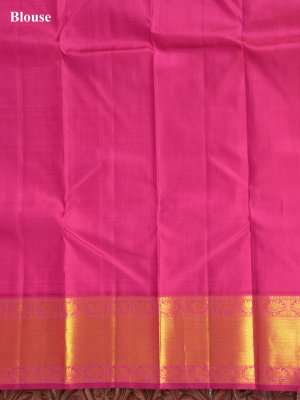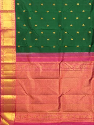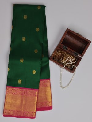 Bottle Green Kanjeevaram Silk Saree With Rani Pink Border