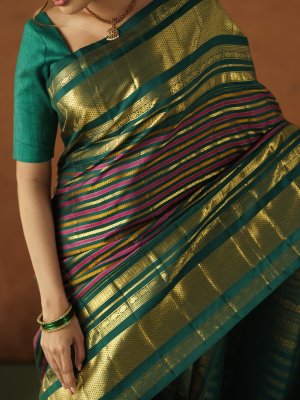 Bottle Green Kanjeevaram Silk Saree with Zari Border
