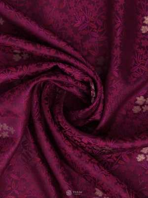 This rich Burgundy Satin Banaras Silk Blouse beautifully blends a smooth, lustrous finish with intricate traditional zari motifs. The deep burgundy hue adds a regal charm, while the delicate floral weaving enhances its elegance.