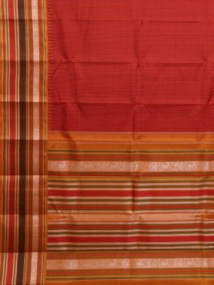 Red Checked Kanjeevaram Pattu Pettu Silk Saree With Mustard Yellow Border