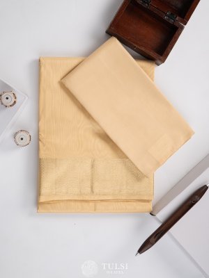 Khaki Silk Dhoti And Vasthram With Self Zari Border