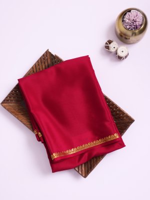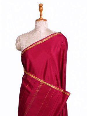 This Pinkish Red Mysore silk saree offers a sophisticated look, combining a deep, rich tone with the classic feel of pure silk. An ideal choice for weddings and traditional celebrations, its remarkably soft and lightweight fabric makes it easy to drape and comfortable to wear throughout any occasion.