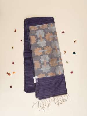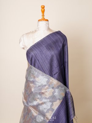 A Dark Blue bailou tussar saree is a stunning and elegant option! enhance various skin tones and can be dressed up or down for different occasions. The unique texture of Tussar silk adds a touch of sophistication, making it ideal for festive events or even weddings.