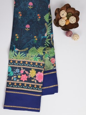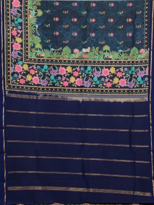 Dark Blue Printed Kanjeevaram Silk Saree