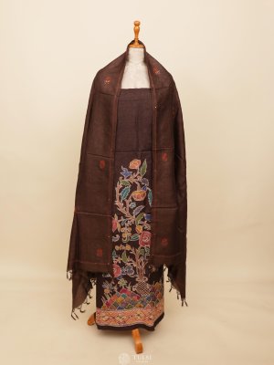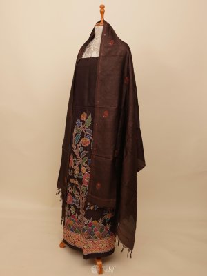 This Dark Brown Tussar Salwar Material that reflects timeless tradition and grace. Paired with a beautifully Batik Print, it brings together rich heritage and subtle charm. Perfect for festive occasions or elegant everyday wear.