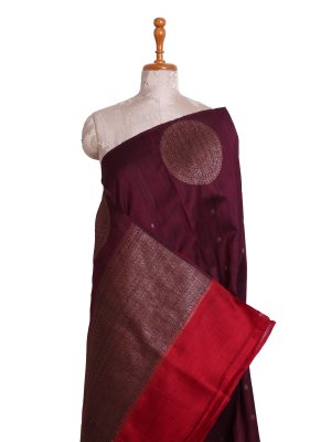 Dark Purple Banaras Tussar Silk Saree