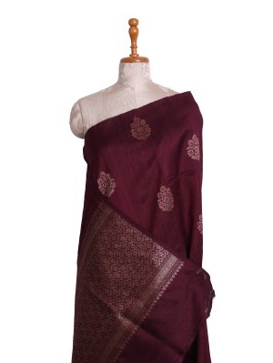Dark Burgundy Banaras Tussar Silk Saree