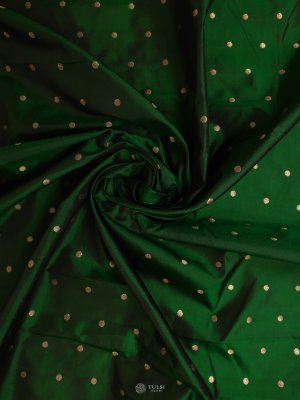 This Dark Green Kanjeevaram silk blouse, adorned with delicate golden buttas, adds timeless elegance to any traditional look. A classic wardrobe essential for festive and bridal pairings.