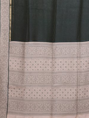 This dark green organza silk saree looks very elegant and stylish. The fabric is light, soft, and slightly see-through, giving it a delicate look. Its rich green color makes it perfect for special occasions. The saree holds its shape well, so the pleats look neat and beautiful. It is a simple yet classy choice for any function.
