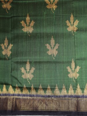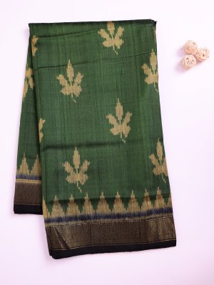 Dark Green Raw Silk Patola Saree with Black Border