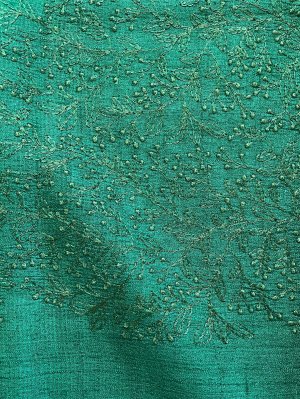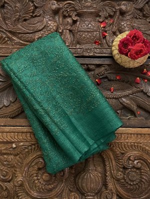 This Handwoven Dark Green Tussar Silk Blouse is adorned with Floral Embroidery All Over.