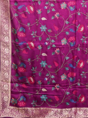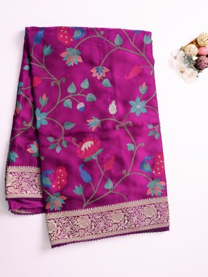 Dark Magenta Crepe Embroidered Silk Saree