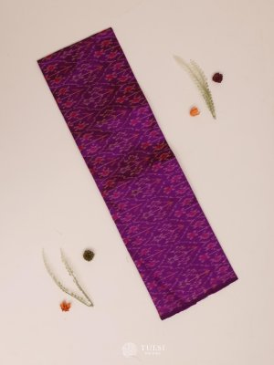 This Dark Purple Ikat Silk Blouse features a rich, with subtle woven patterns that highlight the traditional Ikat style. The silky texture adds a refined shine, making it perfect for pairing with both classic and contemporary sarees.