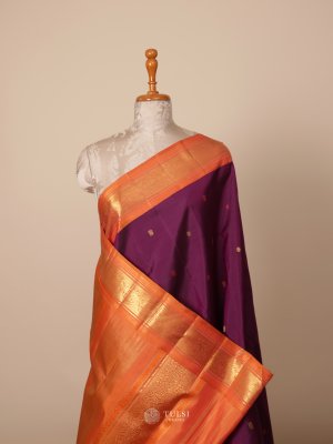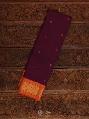 Purple Kanjeevaram Silk Saree With Grey Border