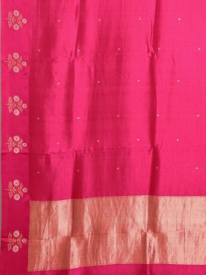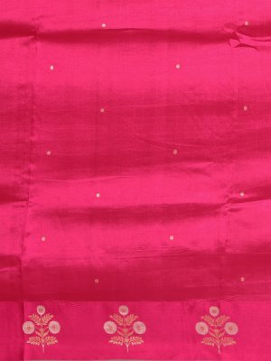 This dark rose Mashru silk saree glows with a glass-like luster and smooth, breathable drape, adorned with scattered gold and silver zari motifs for a subtle, luxurious shimmer. The golden zari border and pallu lend a regal, majestic finish, while the Patola blouse adds an artisanal touch, perfectly balancing traditional elegance with contemporary charm.