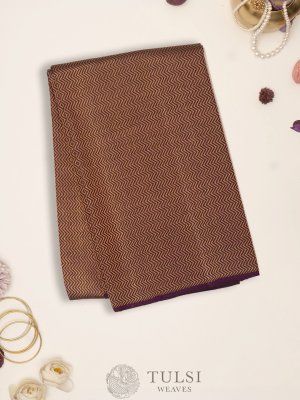 In a deep and luxurious shade of dark violet, this Kanjeevaram silk blouse exudes regal allure with a touch of contemporary flair. Adorned with a captivating zigzag pattern in zari on the body
