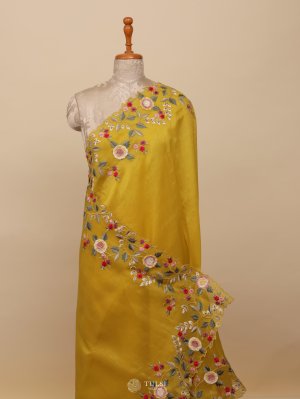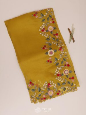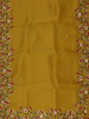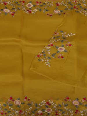 Mustard Organza Embroidery Saree