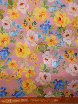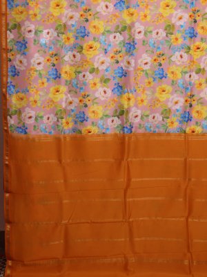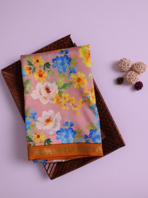 Dusty Peach Floral Printed Kanjeevaram Silk Saree