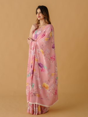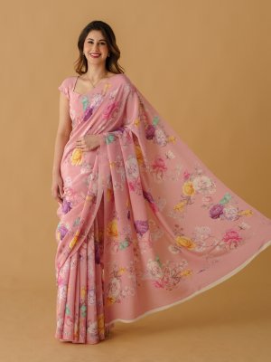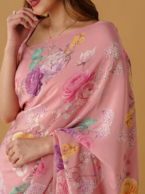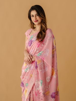 Light Pink Floral Printed Crepe Silk Saree